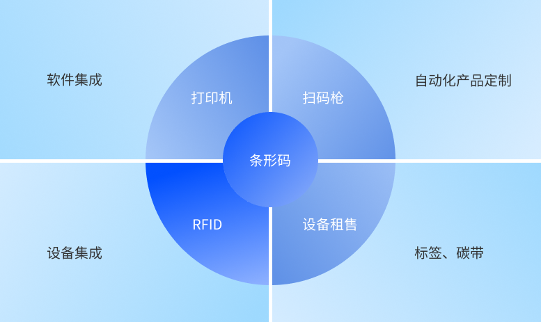 上海鋯瑞技術有限公司業(yè)務分為9大模塊,條形碼,RFID,打印機,掃描槍,軟件集成,設備集成,自動化產品定制,標簽碳帶和設備租售。 以條形碼和RFID為起點,以打印機,掃描槍和標簽碳帶為基礎,逐步技術延伸,層層遞進,實現(xiàn)識別軟件系統(tǒng)開發(fā),自動化檢驗設備集成,自動化產品定制等自主創(chuàng)作研發(fā)能力,滿足各類企業(yè)物聯(lián)網(wǎng)應用需求。